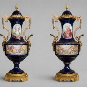 SUITE DE DEUX VASES DÉCORATIFS IDENTIQUES DANS LE GOÛT DE SÈVRES XXᵉ SIÈCLE