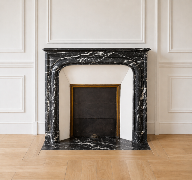 Référence : Cheminée Marbre Marquina style Boudin Louis XIV datant de la fin du XIXème siècle