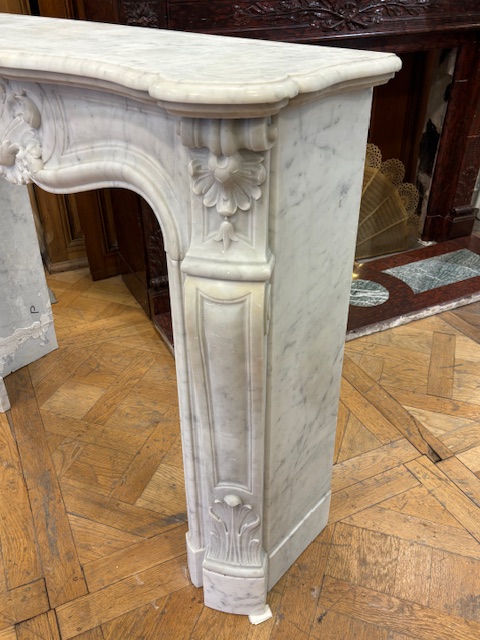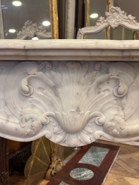 Jolie petite cheminée ancienne de style Louis XV réalisée en marbre de Carrare Blanc datant de la fin du XIXème siècle