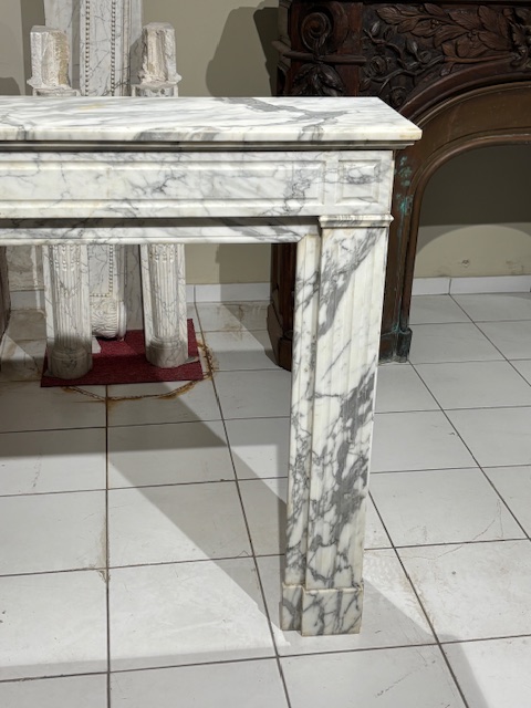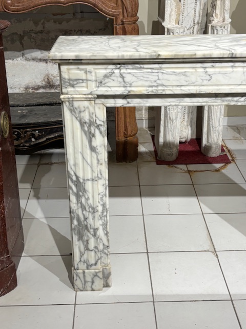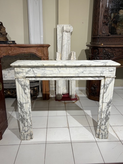 Cheminée ancienne de style Louis XVI datant de la fin du XIXème siècle en marbre Arabescato