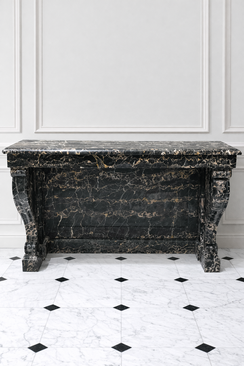Rarissime console de style Empire en marbre Portor datant de la fin du XIXème siècle