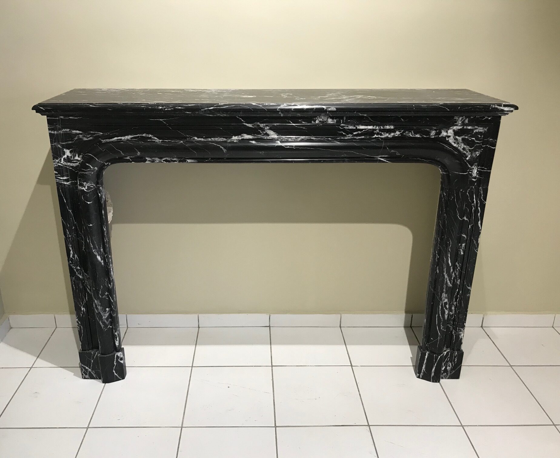 Elegante cheminée ancienne de style Louis XIV en marbre Noir Maquina datant de la fin du XIXème siècle , cheminée en bon état entierement restaurée das nos ateliers ( nettoyage polissage et restaurations des éclats ) . La cheminée est disponible des a présent a notre show room .