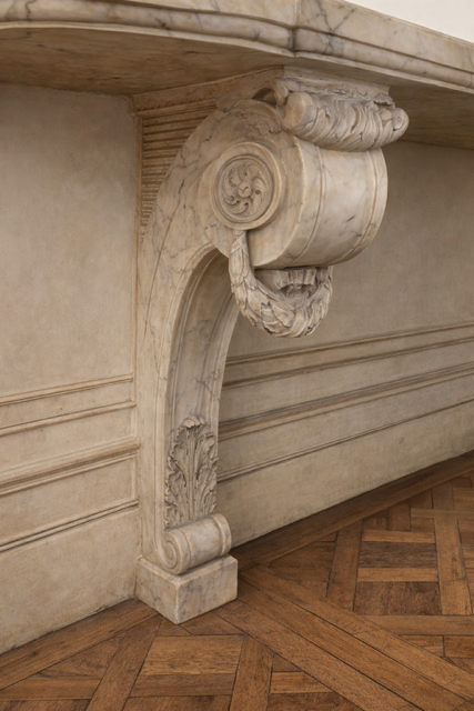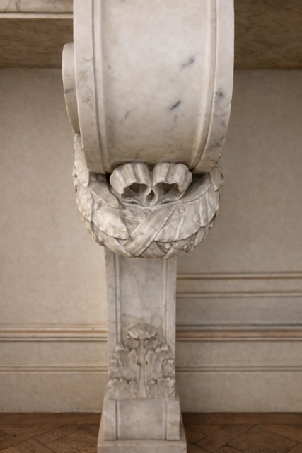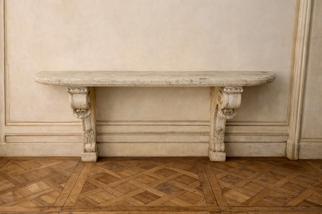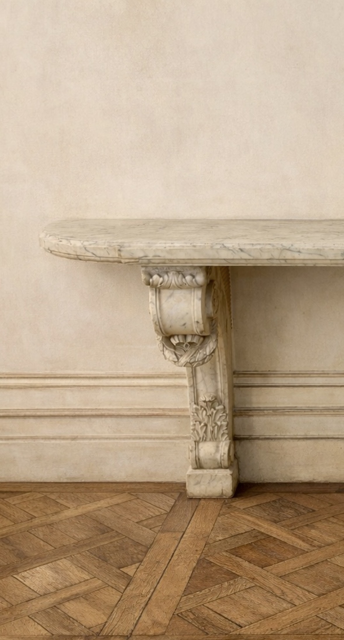Référence : Importante console sculptée réalisée en marbre blanc de style Louis XVI datant de la fin du XIXème siècle