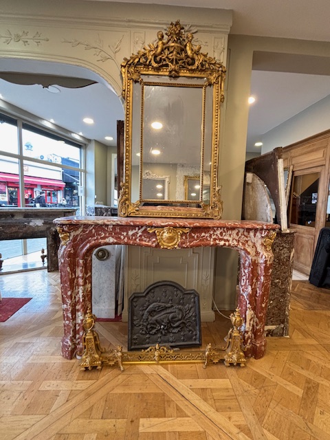 Rarissime et exceptionnelle paire de cheminées anciennes de style Louis XV Napoléon III en marbre rouge incarna turquin à décors de bronzes dorés ou sans bronzes , une paire identique est toujours en place dans le même immeuble Faubourg Saint Honore voir photo . Cheminées entièrement restaurées dans nos ateliers en parfait état disponible à notre show room . Cette paire de cheminées Napoléon III en marbre n’ont pas de rétrécis en fonte d’origines ils pourront être recherchés a la demande du client.