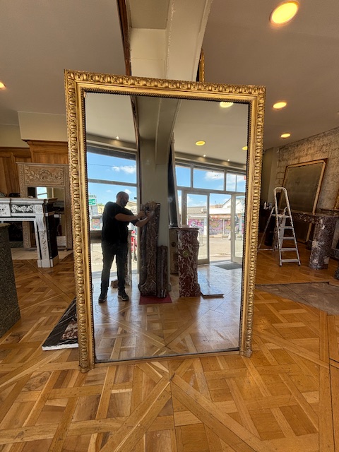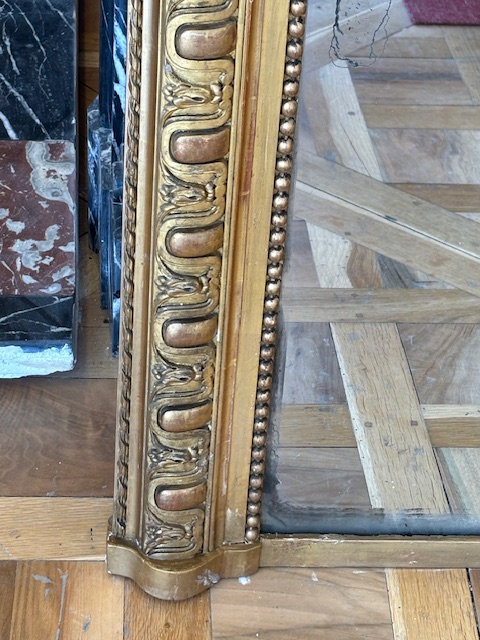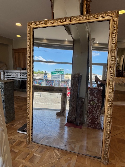 Référence : Tres grand et rare miroir de cheminée au mercure dore a la feuille d’or de style Louis XVI fin XIXème siècle